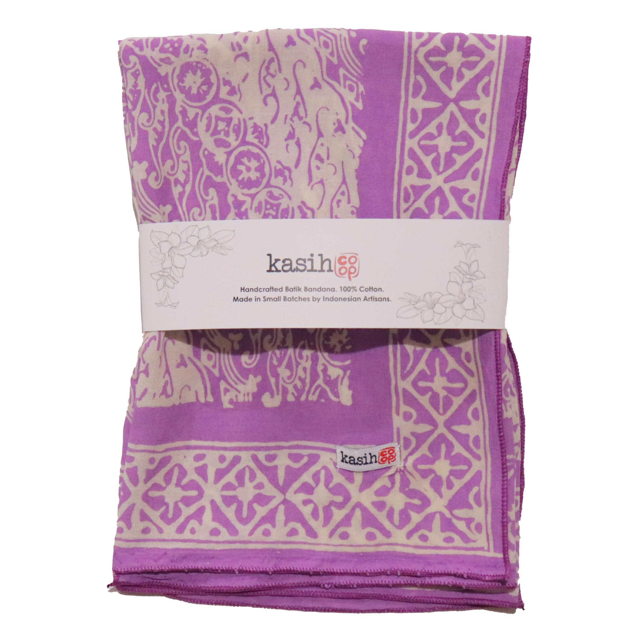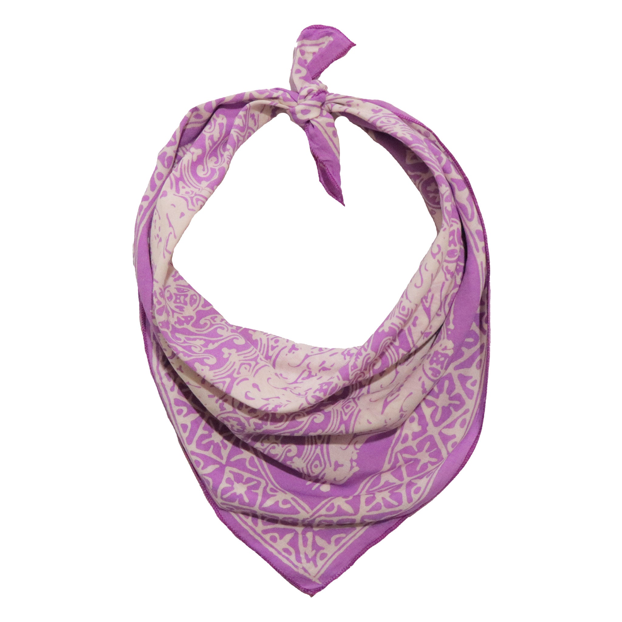 - This bandana is made from white cotton fabric that is then hand-stamped and hand-dyed using 700 years old batik wax and dye technique. The batik fabric is also then sun baked. You should expect some variation of the color.