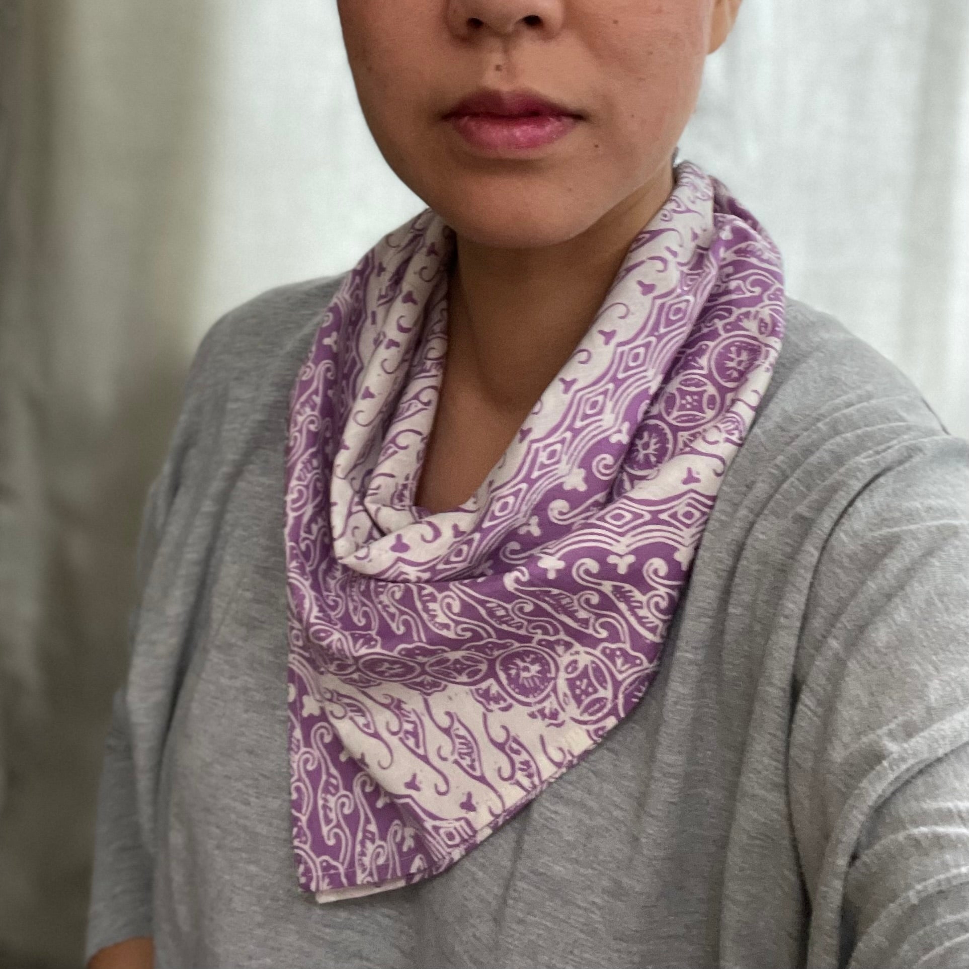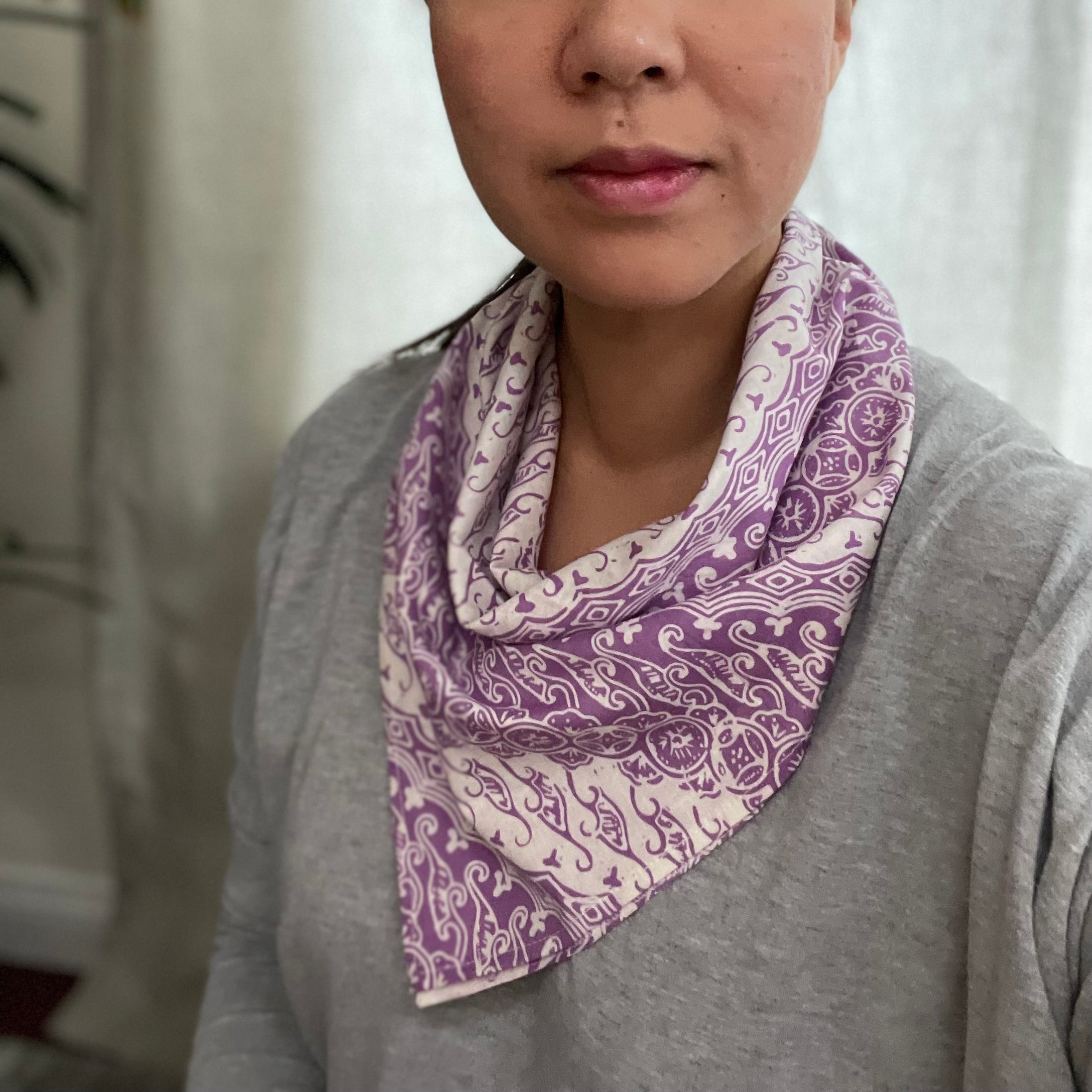 Batik Bandana Purple Lilac Blades, 100% Cotton, Hand Dyed Hair Cover Scarf
