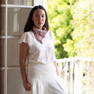 This is a hand-dyed and hand-stamped batik bandana, handmade by artisans. This fabric is handmade by artisans in Java using centuries old wax & dye batik technique.