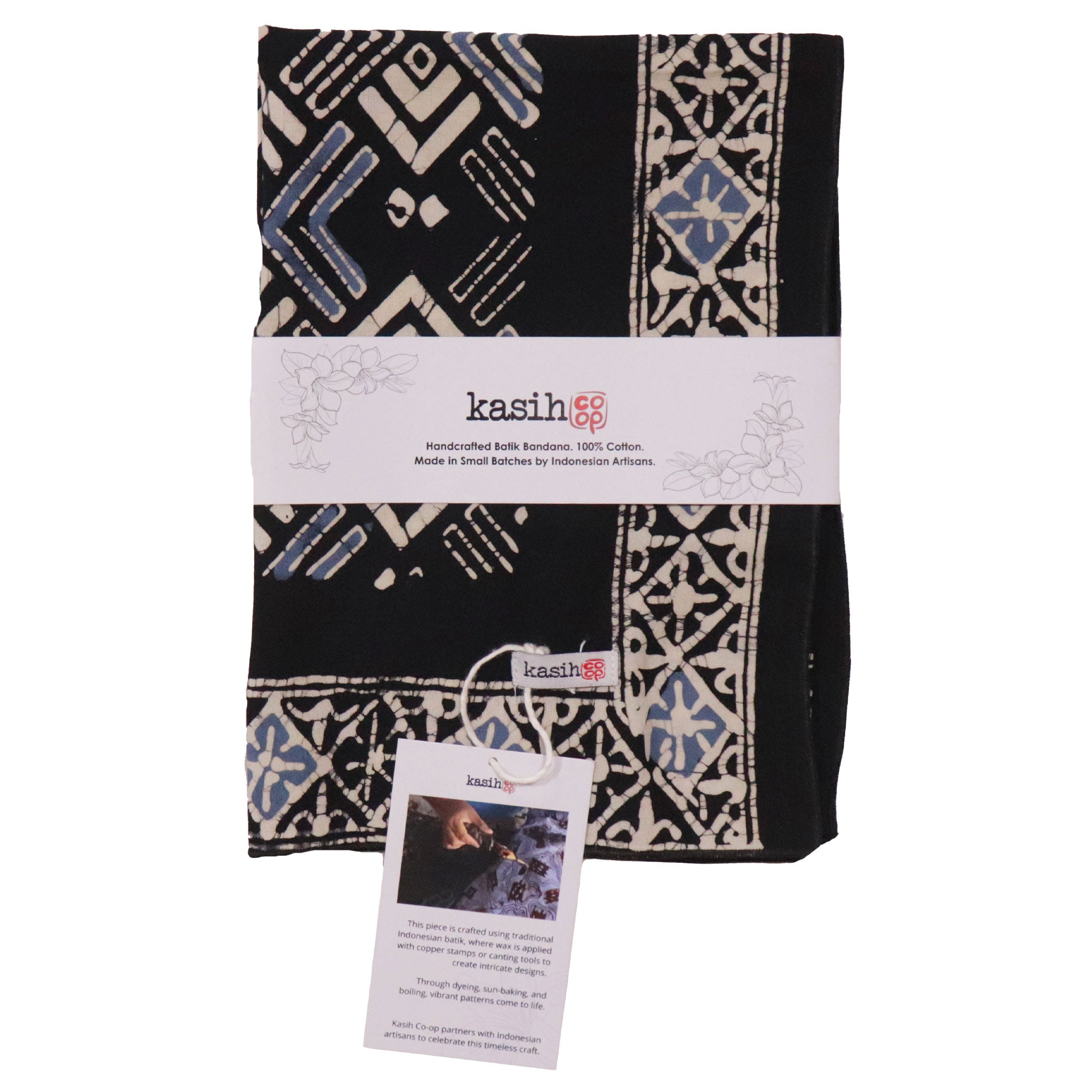 - This bandana is made from white cotton fabric that is then hand-stamped and hand-dyed using 700 years old batik wax and dye technique. The batik fabric is also then sun baked. You should expect some variation of the color.