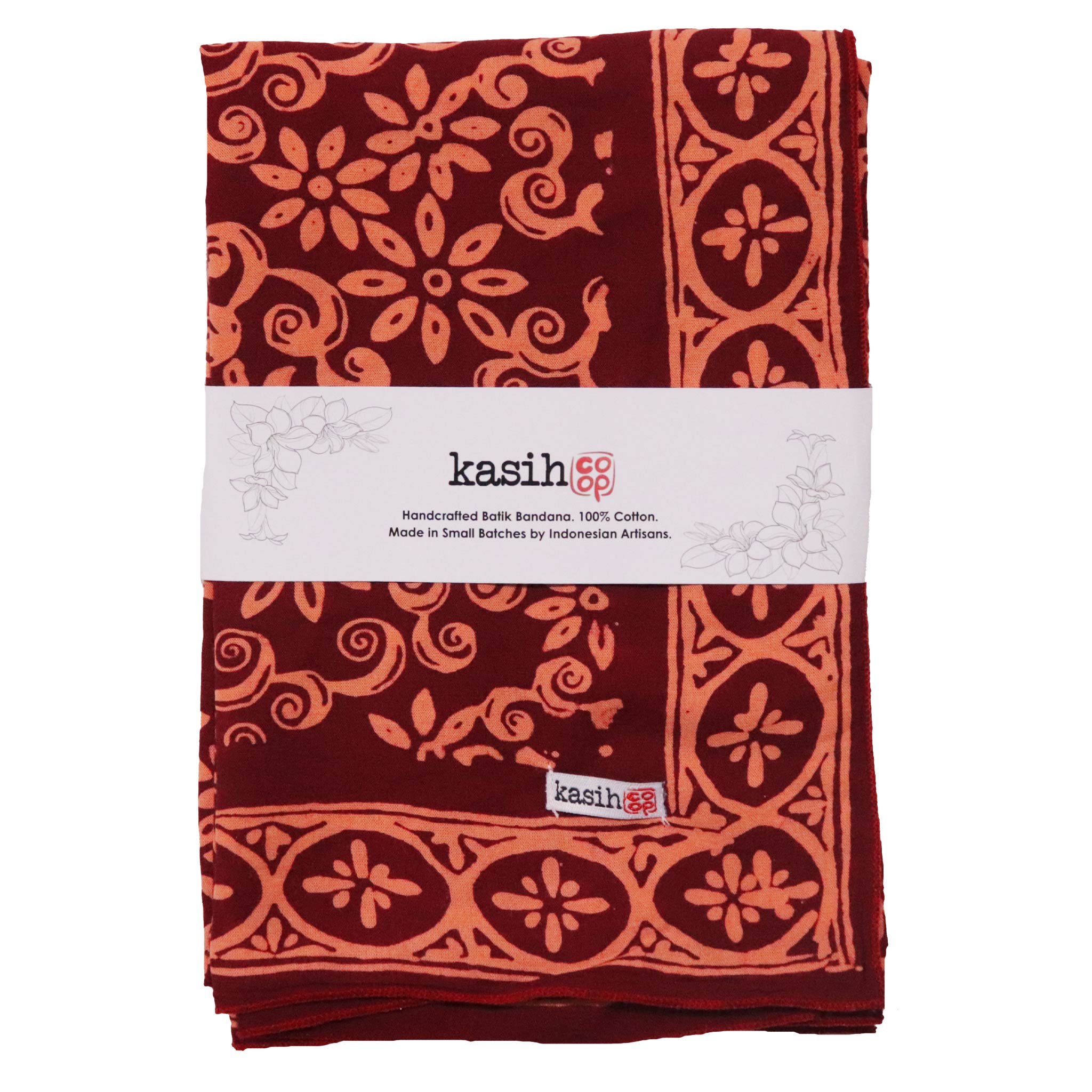 This is a hand-dyed and hand-stamped batik bandana, handmade by artisans. This fabric is handmade by artisans in Java using centuries old wax & dye batik technique.