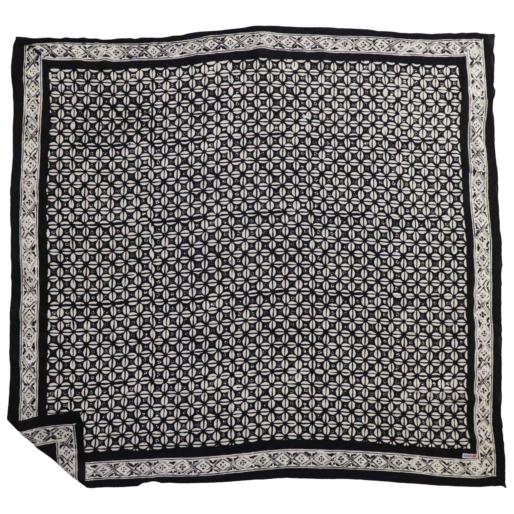Large 39" Hand Dyed Batik Bandana, 100% Soft Cotton, Horn Beetle, Black White
