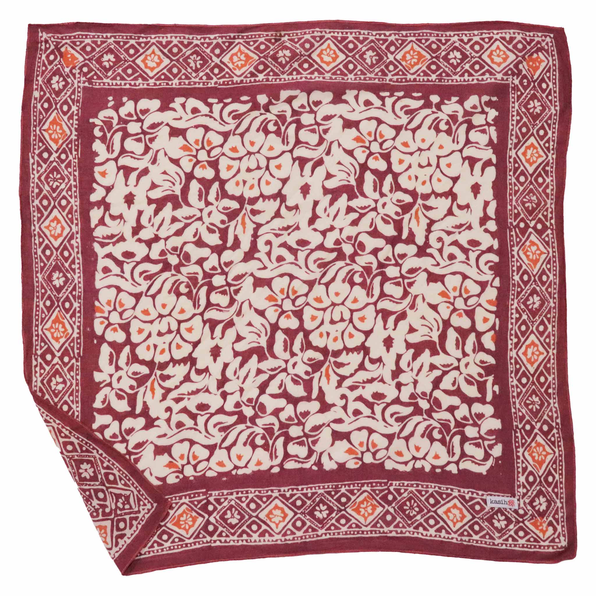 Ce bandana est fabriqué à partir de tissu de coton blanc qui est ensuite estampé et teint à la main selon une technique de cire et de teinture batik vieille de 700 ans. Le tissu batik est également ensuite cuit au soleil. Vous devez vous attendre à une certaine variation de couleur.
