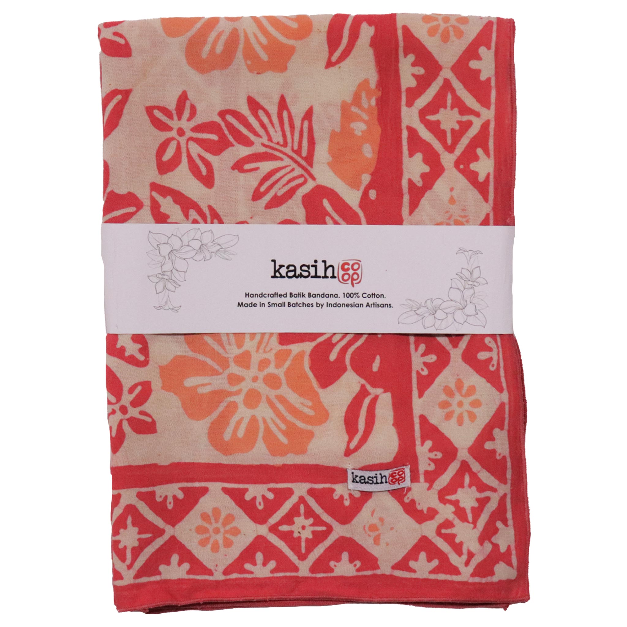 Il s'agit d'un bandana batik teint et estampillé à la main, fabriqué à la main par des artisans. Ce tissu est fabriqué à la main par des artisans de Java en utilisant une technique de batik de cire et de teinture vieille de plusieurs siècles.