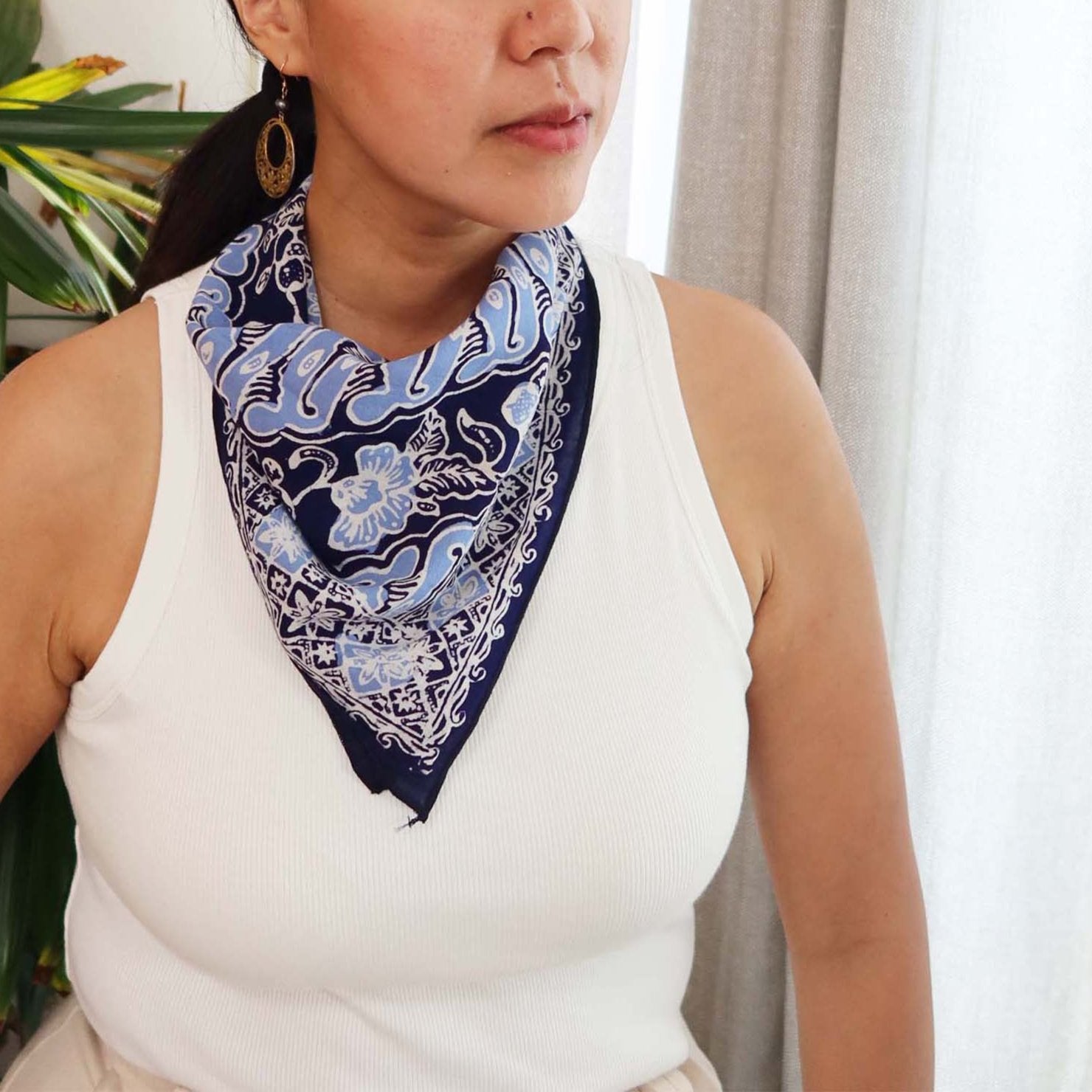 Our bandanas are handcrafted using authentic Indonesian batik techniques, a centuries-old art form. Each piece is created by skilled artisans, ensuring that no two bandanas are exactly alike. Because our bandanas square scarves are made using traditional batik method, it is printed on both sides as we dip the fabric into the dye. By purchasing from us, you’re supporting sustainable, fair-trade practices and preserving cultural heritage.