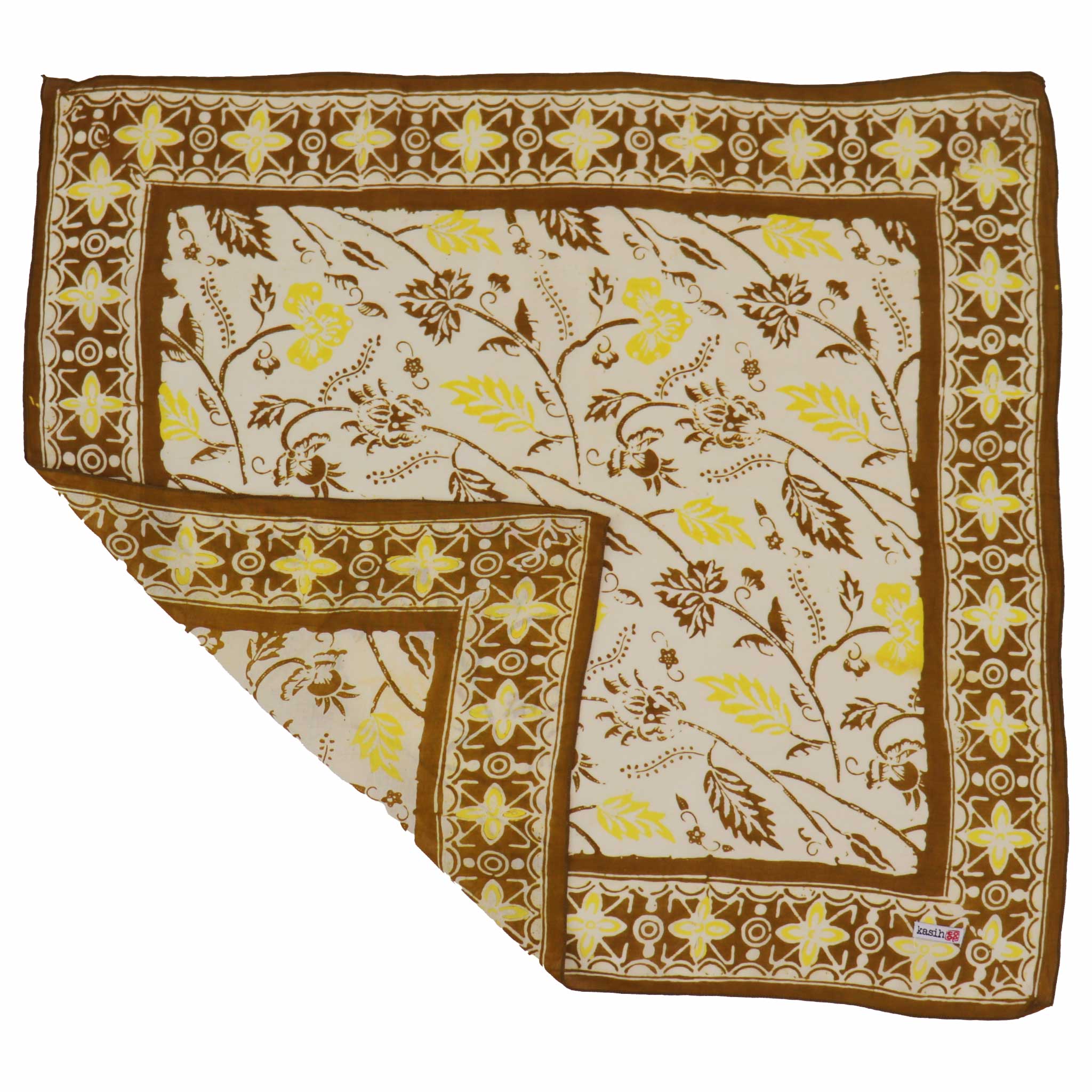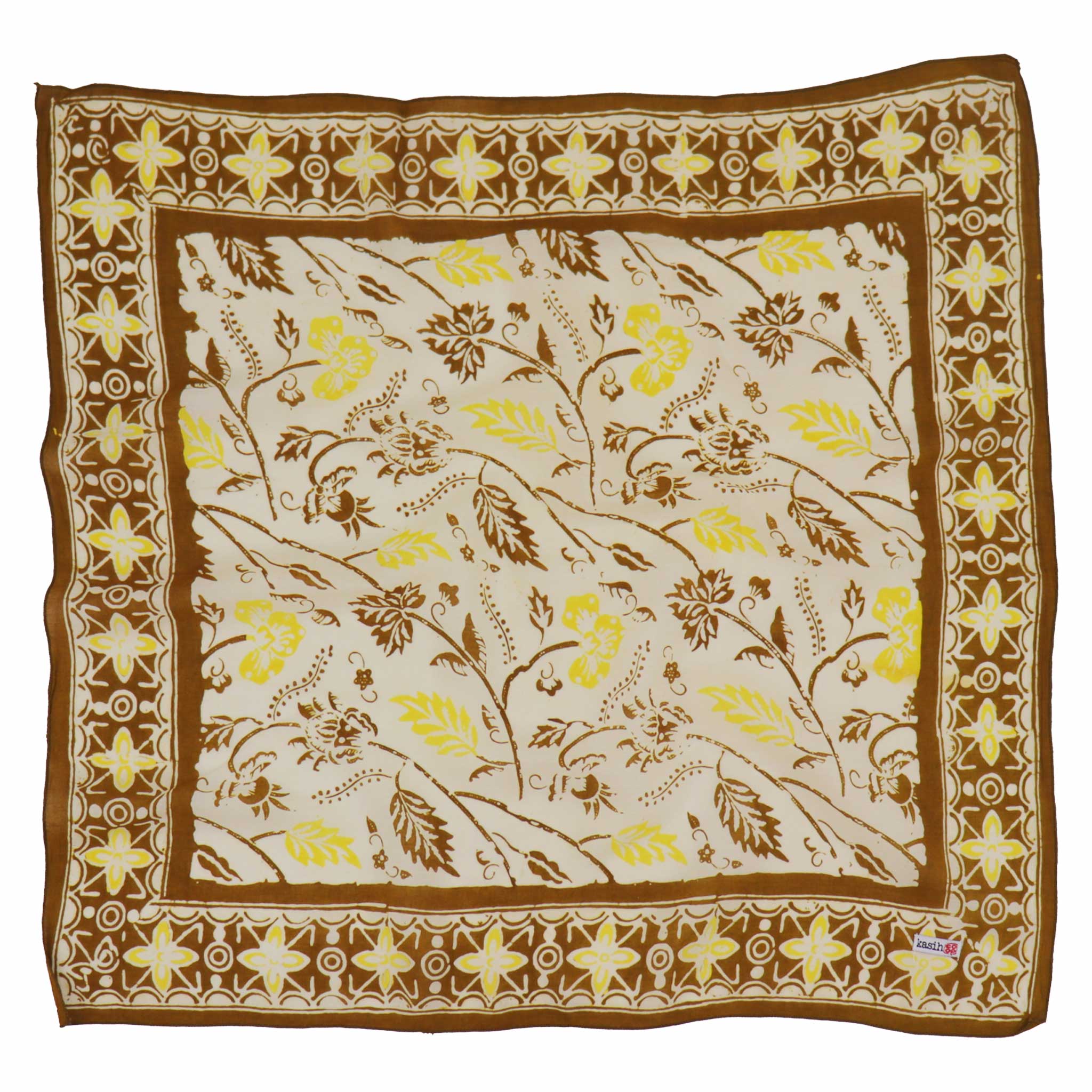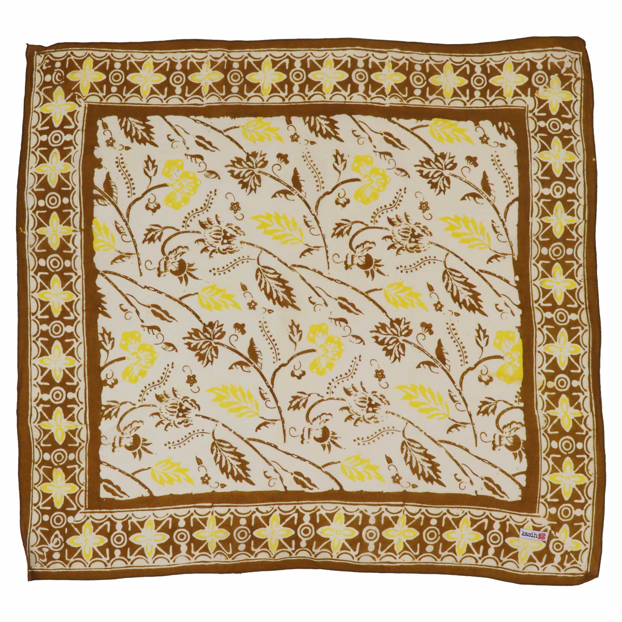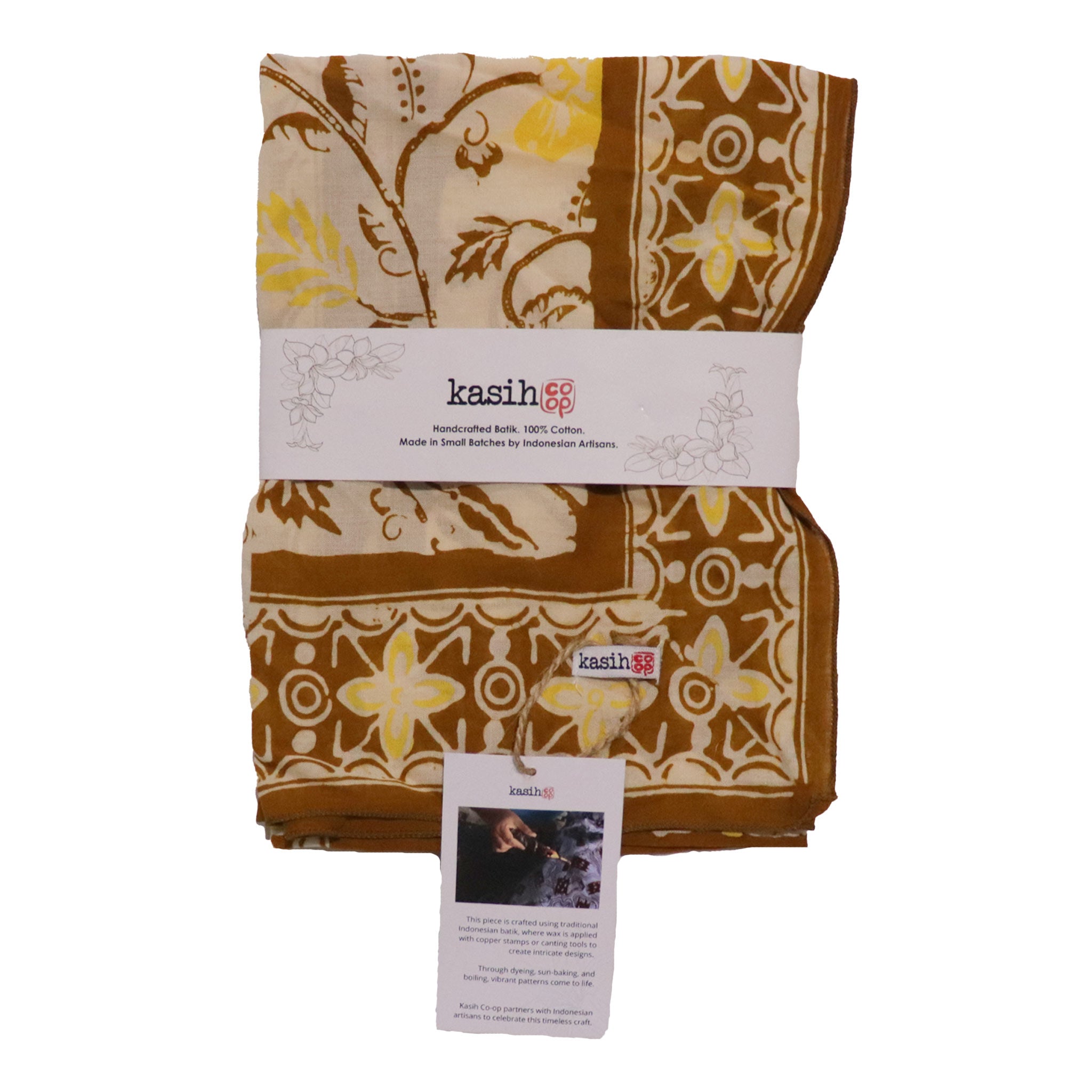 Our Kasih Co-op's bandana is created using the traditional Batik Cap (Hand-Stamped) or Batik Tulis (fully hand drawn) wax-resist technique. Artisans apply hot wax onto the 100% cotton cloth before it is submerged in dye, a meticulous, multi-step process that often includes "sun baking" the fabric to set the colors.