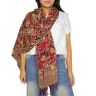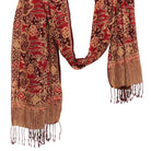 Handmade Batik Scarf, Soft Cotton, Sunlit Garden, Red Burgundy