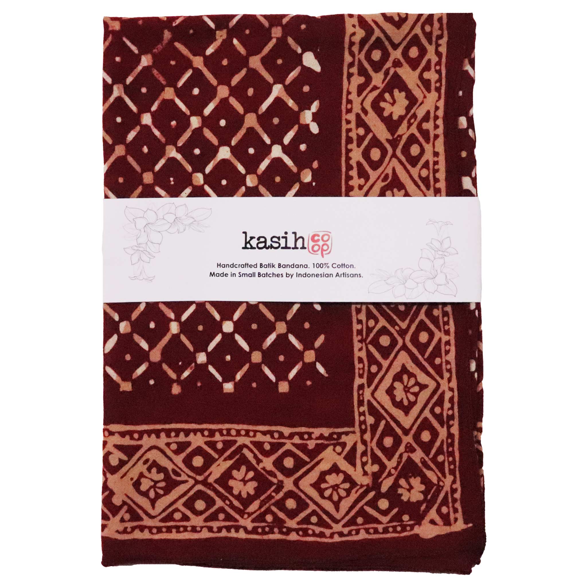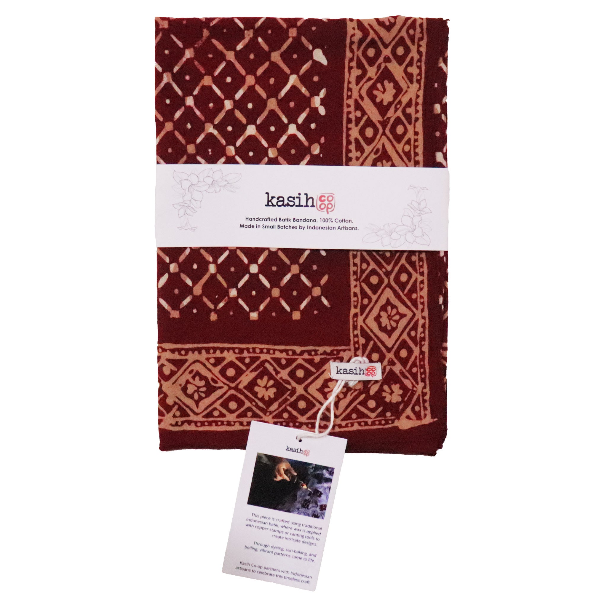 Il s'agit d'un bandana batik teint et estampillé à la main, fabriqué à la main par des artisans. Ce tissu est fabriqué à la main par des artisans de Java en utilisant une technique de batik de cire et de teinture vieille de plusieurs siècles.