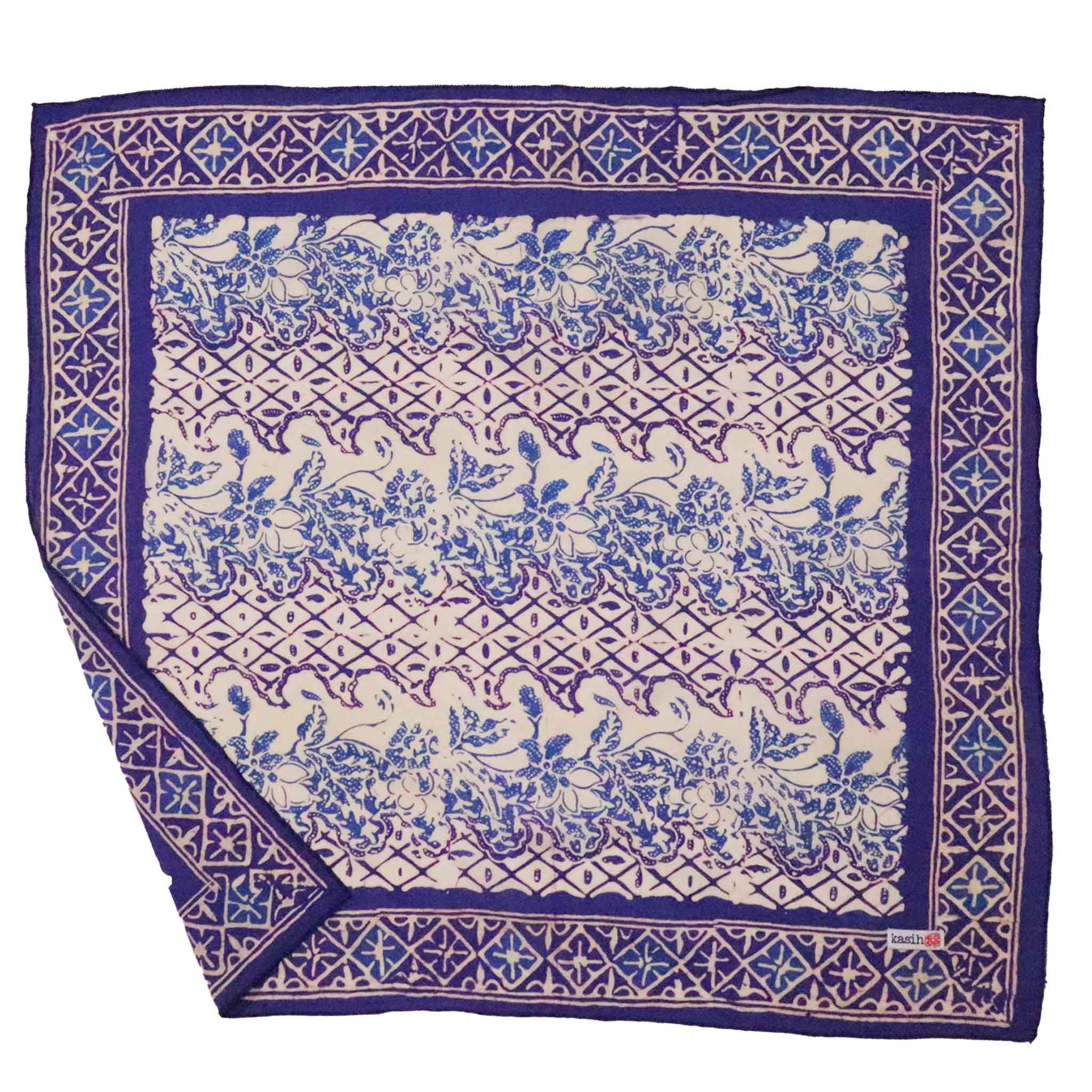 Il s'agit d'un bandana batik teint et estampillé à la main, fabriqué à la main par des artisans. Ce tissu est fabriqué à la main par des artisans de Java en utilisant une technique de batik de cire et de teinture vieille de plusieurs siècles.