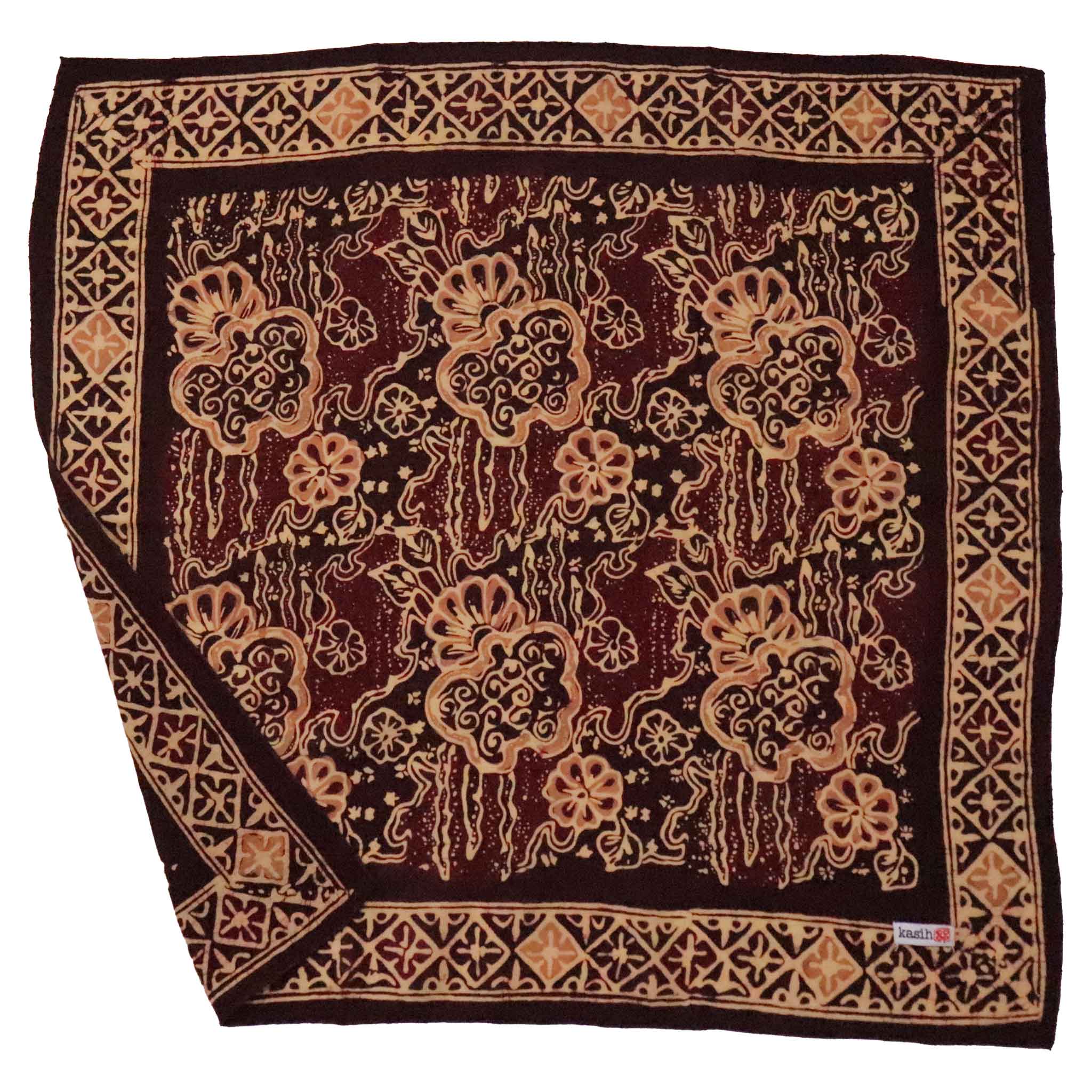 Il s'agit d'un bandana batik teint et estampillé à la main, fabriqué à la main par des artisans. Ce tissu est fabriqué à la main par des artisans de Java en utilisant une technique de batik de cire et de teinture vieille de plusieurs siècles.