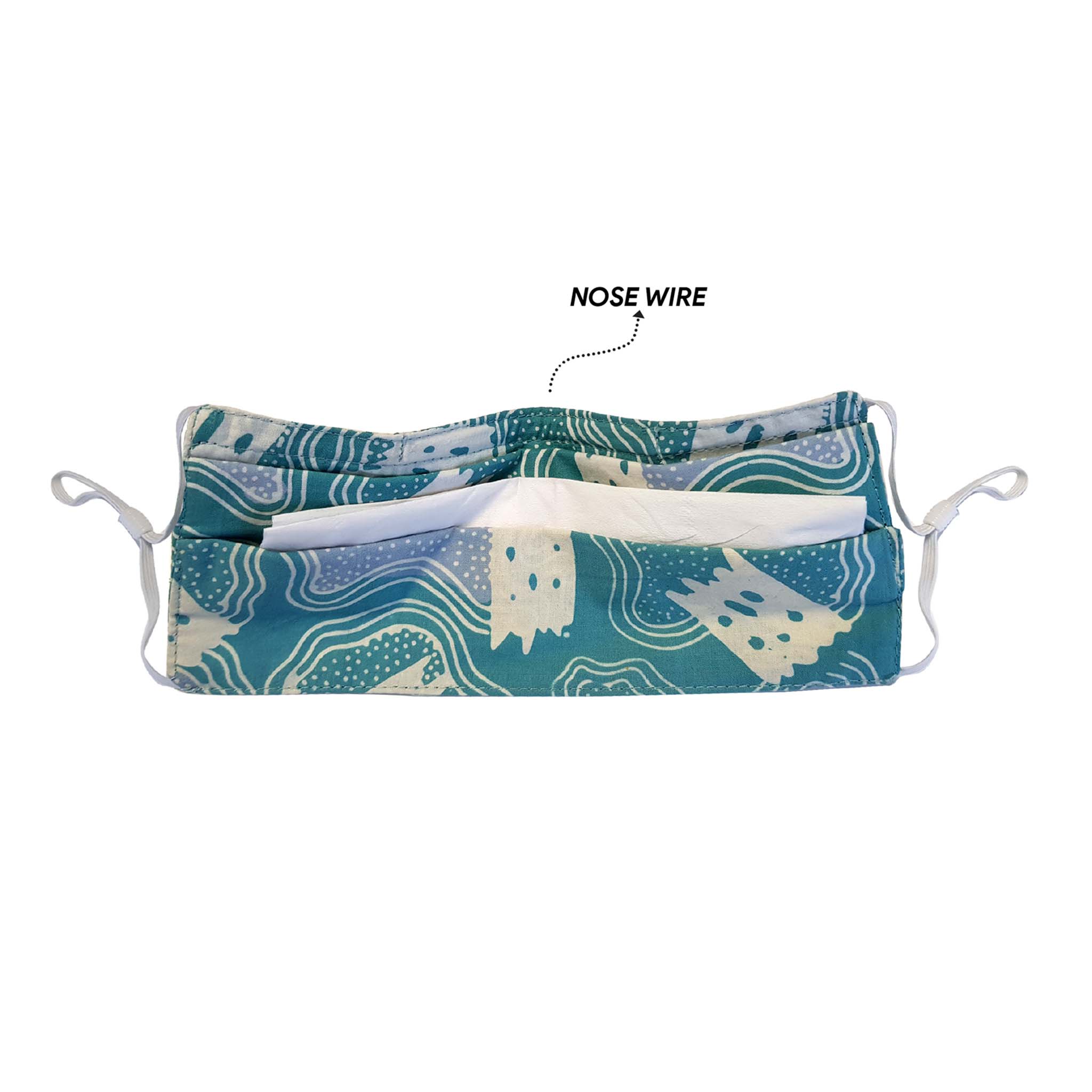 - A un fil de nez et une sangle d’oreille élastique réglable.