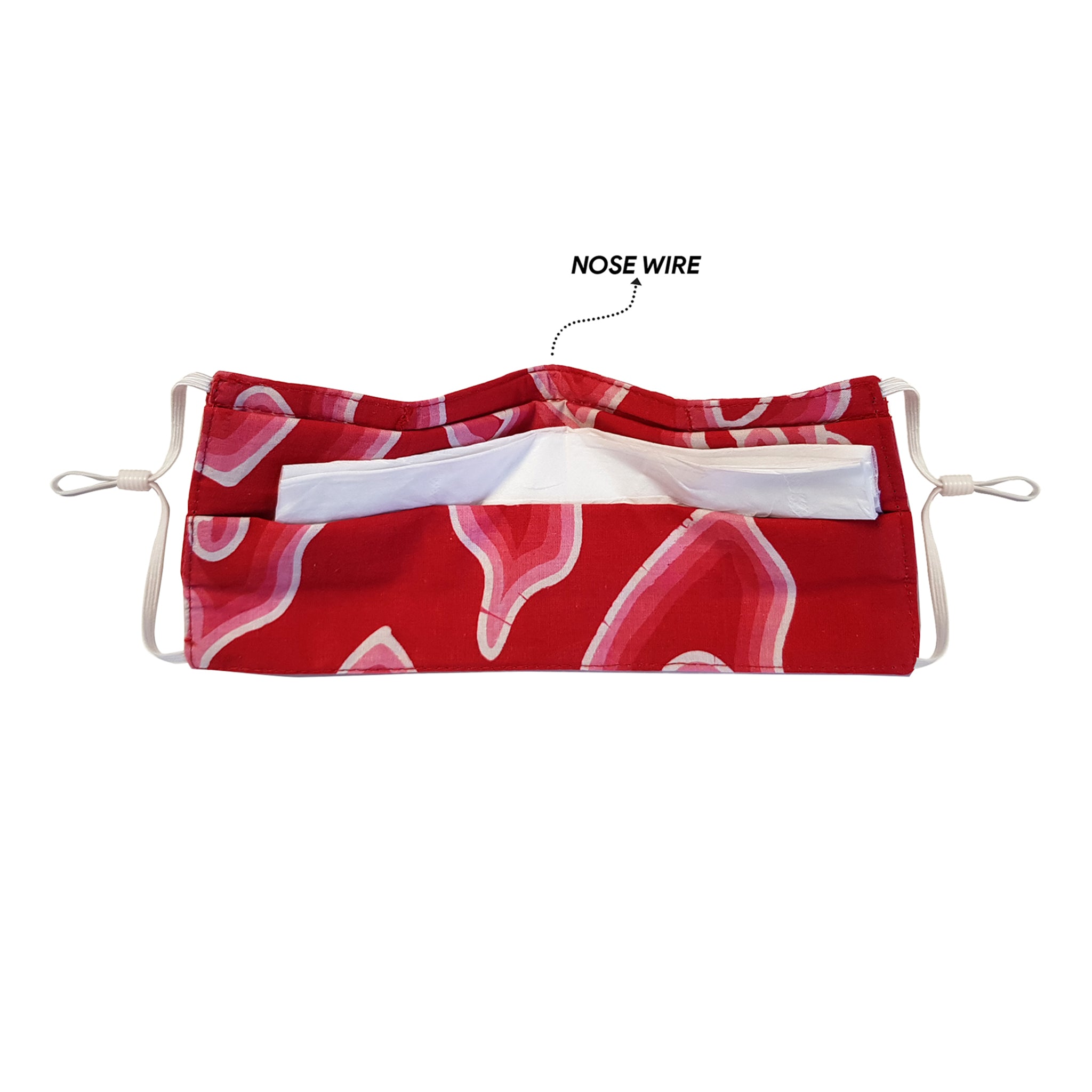Il s'agit d'un masque facial batik rectangulaire lavable à trois couches fabriqué à la main par des artisans.