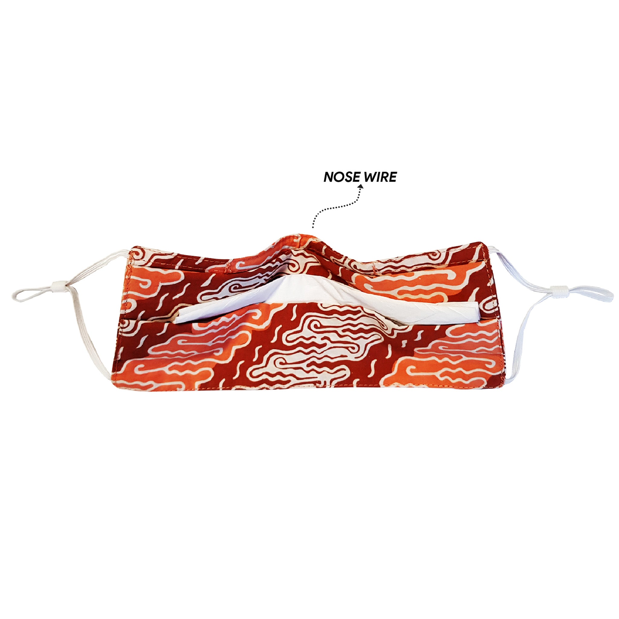 Il s'agit d'un masque facial batik rectangulaire lavable à trois couches fabriqué à la main par des artisans.