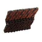 - Ce motif a été réalisé en combinant un tampon à la main avec des blocs de cuivre et une technique de batik « incliné » dessiné à la main.