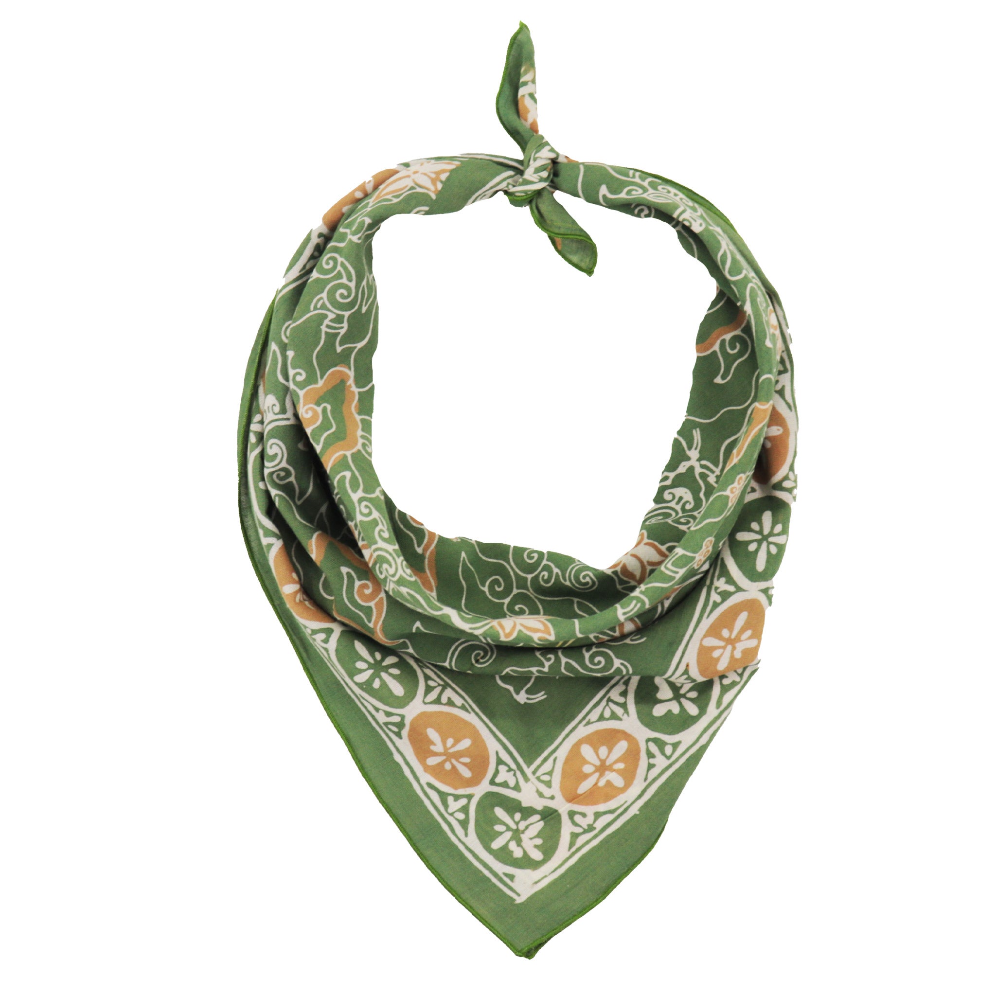 Présentation du bandana Batik teint et estampillé à la main, une œuvre d'art portable vraiment unique et authentique. Fabriqué par des artisans qualifiés utilisant une technique de cire et de teinture batik vieille de 700 ans, ce bandana impressionnera à coup sûr.