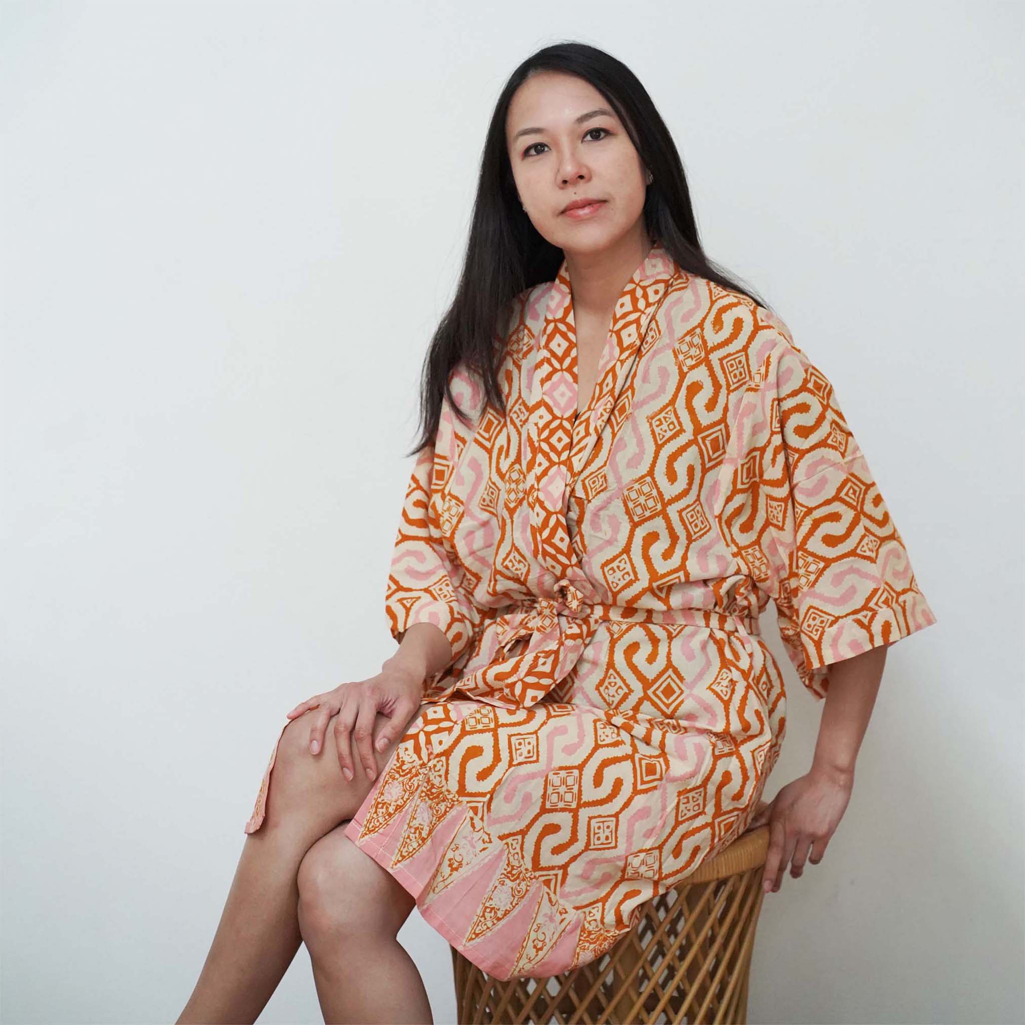 Robe/Kimono Batik fait main - Coton Paris - Mosaïque Coucher de Soleil