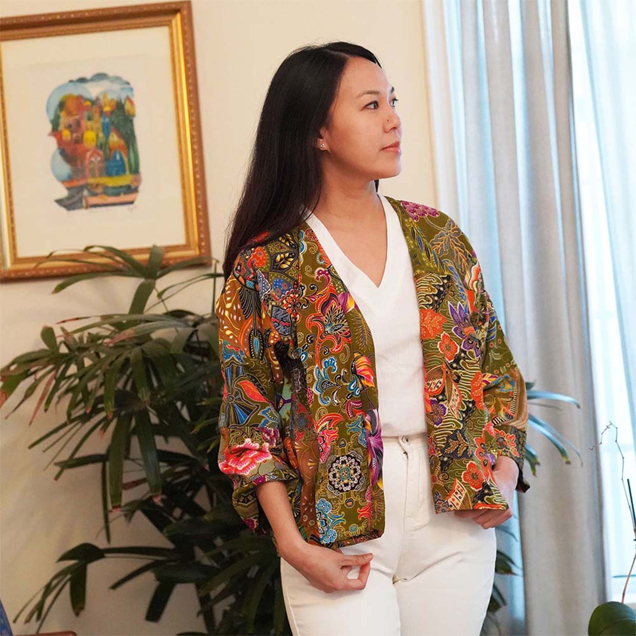 Veste Batik imprimée matelassée épaisse faite à la main avec doublure en coton matelassé - odk006