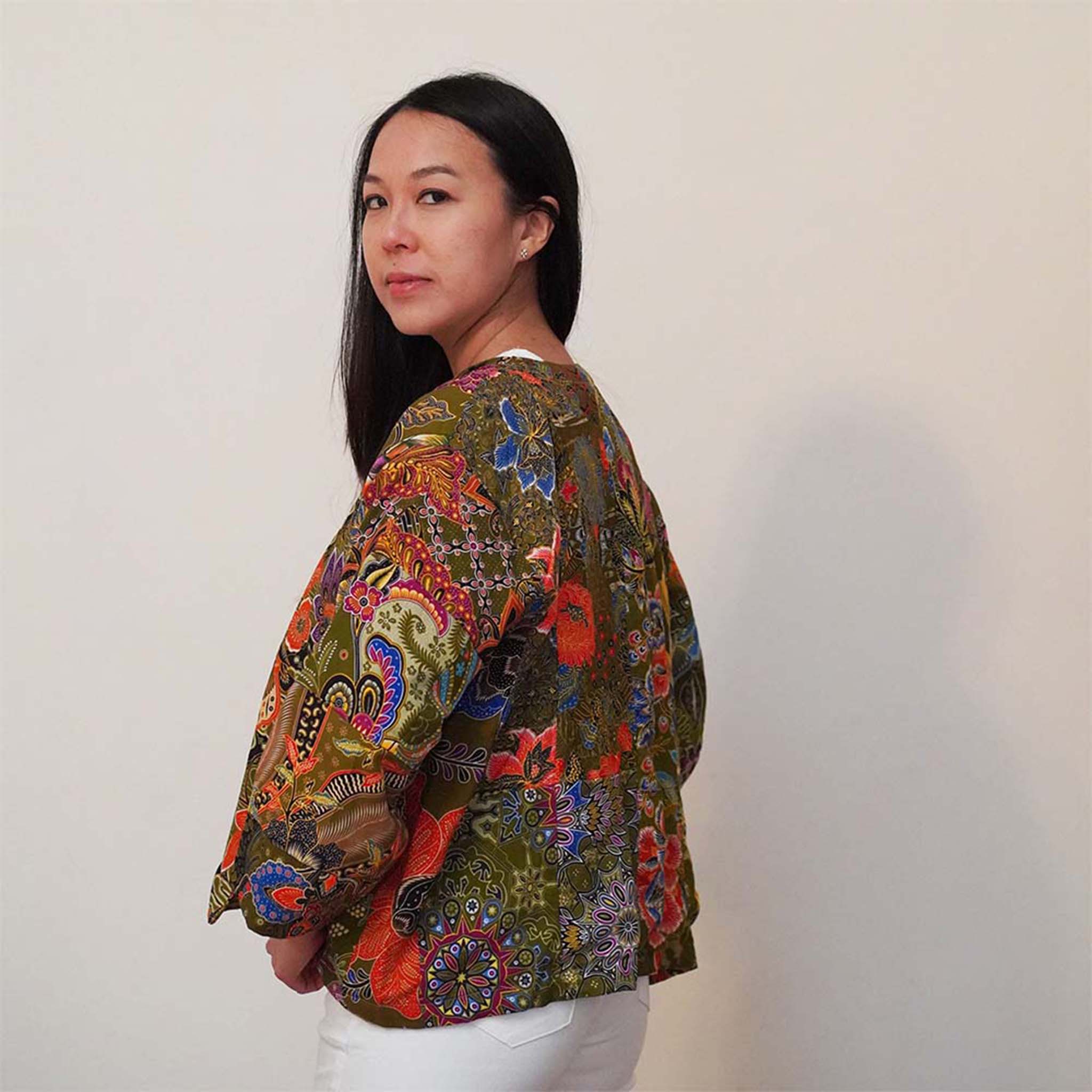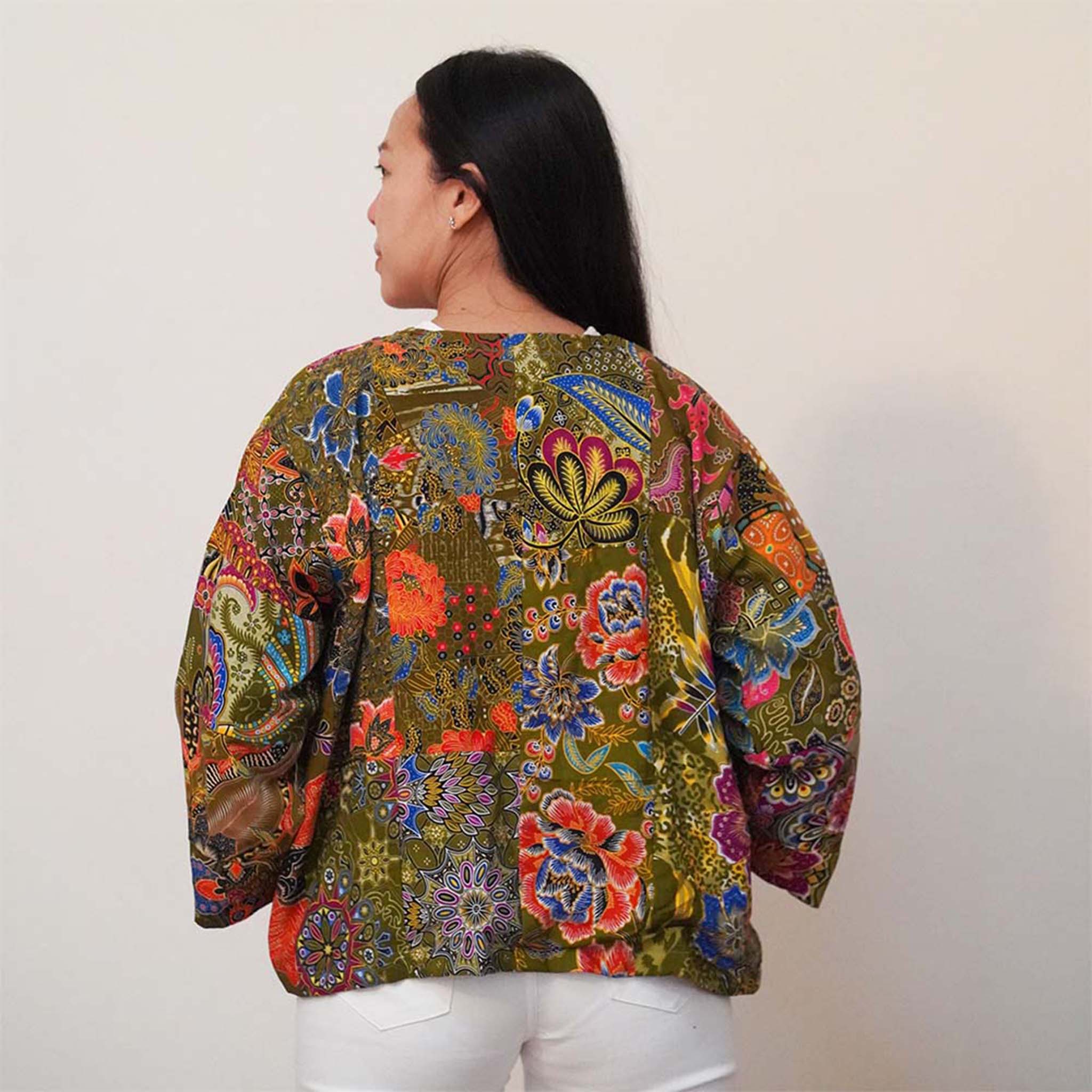 - En raison du matériau recyclé et de la nature artisanale de cet article, chaque kimono quilt batik n'est pas identique. L'impression sera d'un motif et d'une couleur légèrement différents mais en variation de motif mélangé noir, bleu, rose, violet et vert.