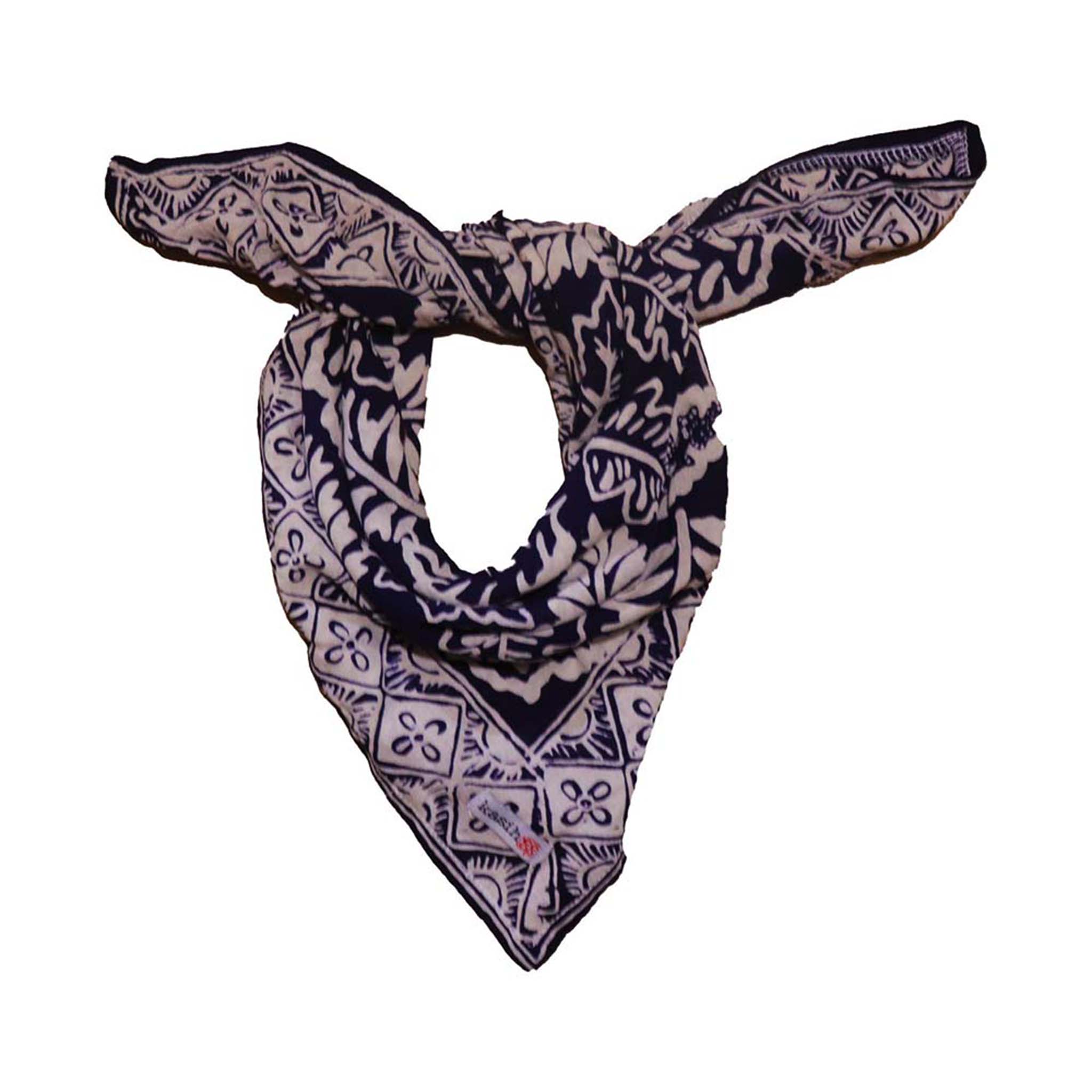 Introducing the Hand-Dyed and Hand-Stamped Batik Bandana, a truly unique and authentic piece of wearable art. Made by skilled artisans using a 700-year-old batik wax and dye technique, this bandana is sure to impress.