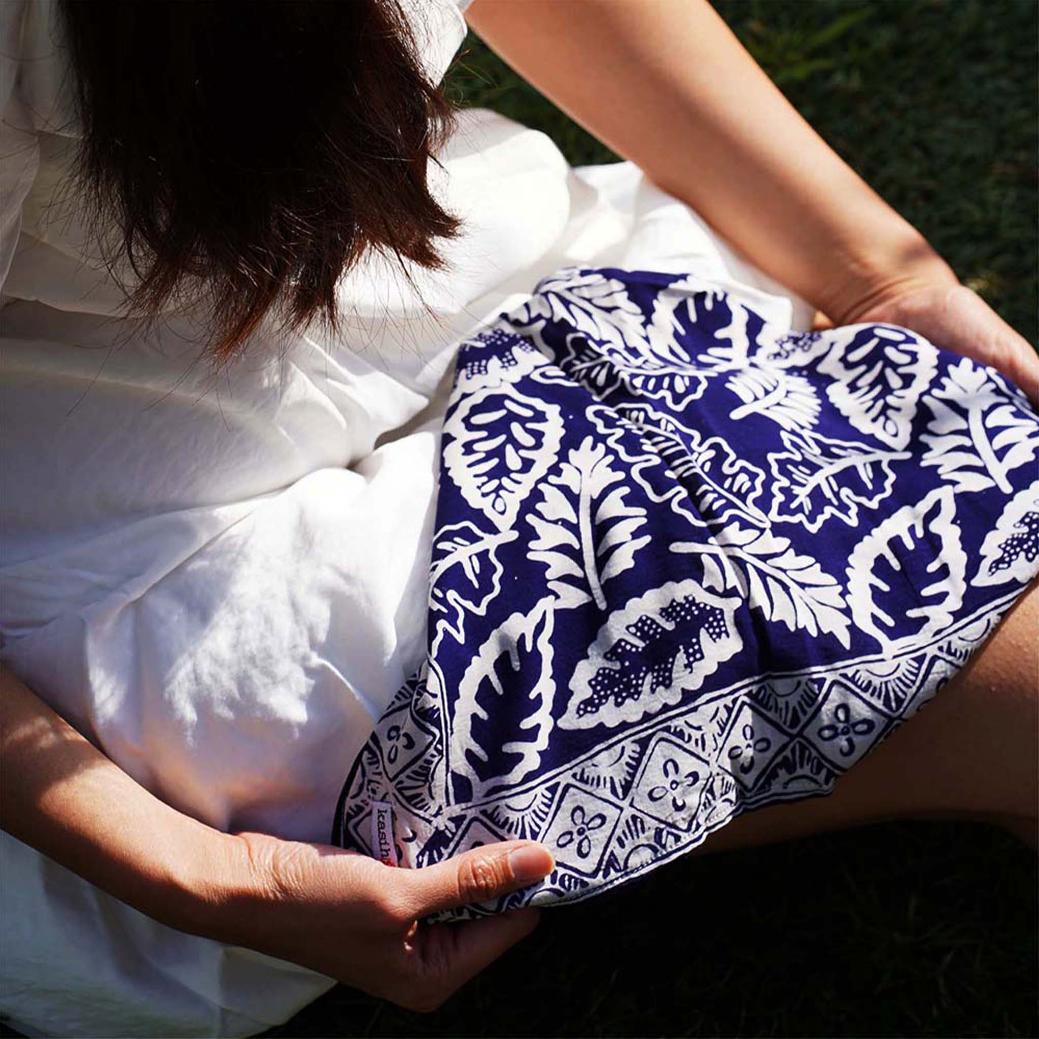 This bandana is made from white cotton fabric that is then hand-stamped and hand-dyed using 700 years old batik wax and dye technique. The batik fabric is also then sun baked. You should expect some variation of the color.