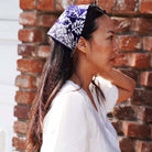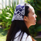 Batik Bandana Blue Leaves, 100% Cotton, Hand Dyed Hair Cover Scarf