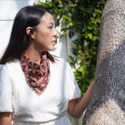 Introducing the Hand-Dyed and Hand-Stamped Batik Bandana, a truly unique and authentic piece of wearable art. Made by skilled artisans using a 700-year-old batik wax and dye technique, this bandana is sure to impress.