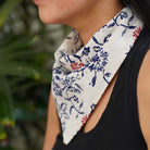 Batik Bandana - Fleurs rouges et bleues, batik fait main teint à la main