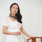 Ce bandana est fabriqué à partir de tissu de coton blanc qui est ensuite estampé et teint à la main selon une technique de cire et de teinture batik vieille de 700 ans. Le tissu batik est également ensuite cuit au soleil. Vous devez vous attendre à une certaine variation de couleur.