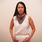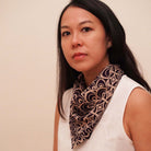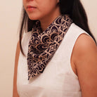 Batik Bandana, Crème Noire, Coton léger 20" carré, teint à la main et imprimé à la main, cire et teinture