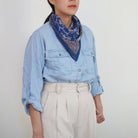 - Ce bandana est fabriqué à partir de tissu de coton blanc qui est ensuite estampé et teint à la main selon une technique de cire et de teinture batik vieille de 700 ans. Le tissu batik est également ensuite cuit au soleil. Vous devez vous attendre à une certaine variation de couleur.