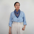 Il s'agit d'un bandana batik teint et estampillé à la main, fabriqué à la main par des artisans. Ce tissu est fabriqué à la main par des artisans de Java en utilisant une technique de batik de cire et de teinture vieille de plusieurs siècles.