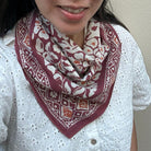 Fabriqué à partir de tissu 100 % coton, ce bandana est à la fois doux et durable, avec un tissage plus serré qui offre une sensation plus substantielle que le tissu bandana traditionnel plus fin. Le tissu en coton blanc est estampé et teint à la main dans un magnifique motif Arbor, ce qui donne lieu à une œuvre d'art en tissu unique en son genre, cuite au soleil. Veuillez noter qu'en raison du processus de teinture à la main, vous devez vous attendre à une certaine variation de couleur, ce qui rend chaque bandana vraiment unique.