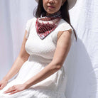 - Ce bandana est fabriqué à partir de tissu de coton blanc qui est ensuite estampé et teint à la main selon une technique de cire et de teinture batik vieille de 700 ans. Le tissu batik est également ensuite cuit au soleil. Vous devez vous attendre à une certaine variation de couleur.