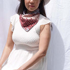 - Ce tissu est fabriqué à partir d'un tissu en coton étroitement tissé qui semble plus substantiel que le tissu bandana fluide et plus fin.