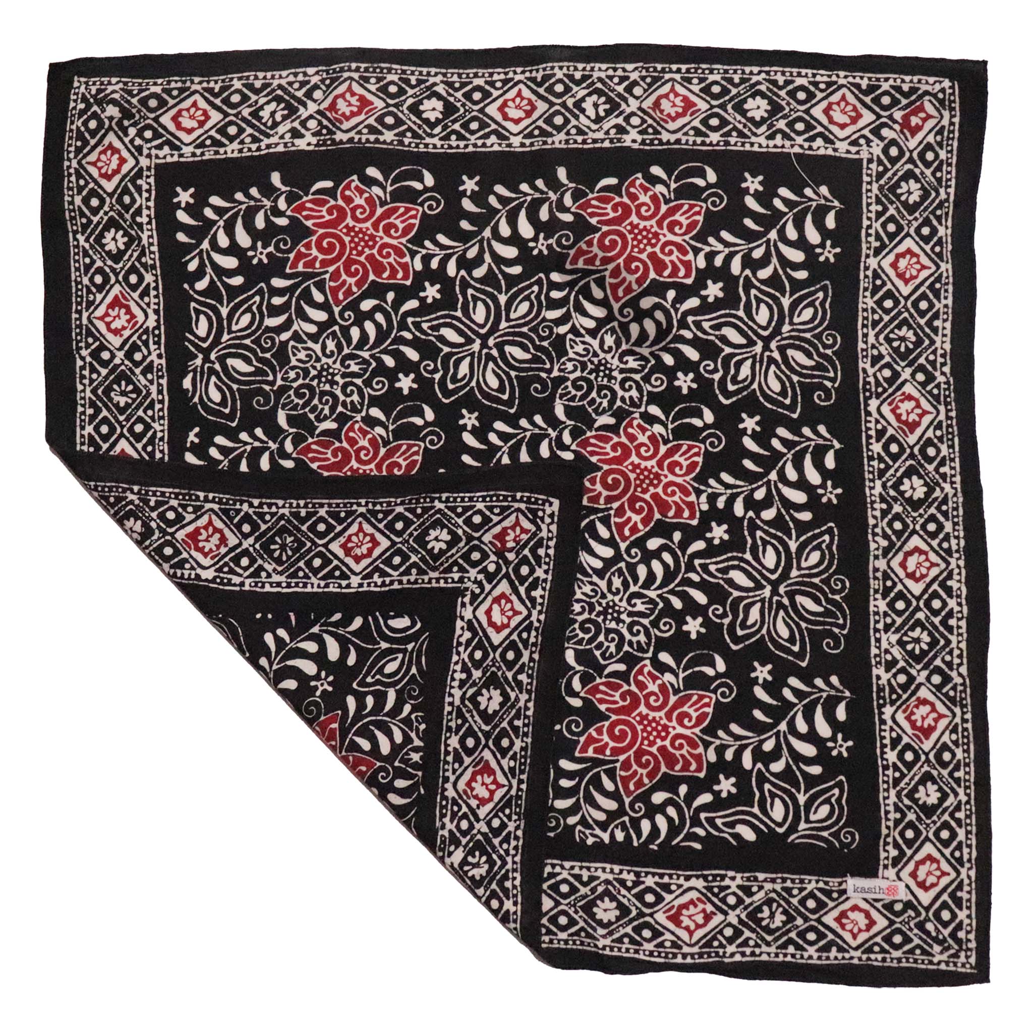 Our bandanas are created using a 700-year-old traditional batik process. Because the white cotton is hand-stamped, hand-dyed, sun-baked, and pre-washed to remove hot wax, minor shrinkage and slight variations in shape or color occur naturally. This adds to the uniqueness of each piece, ensuring no two are exactly alike.