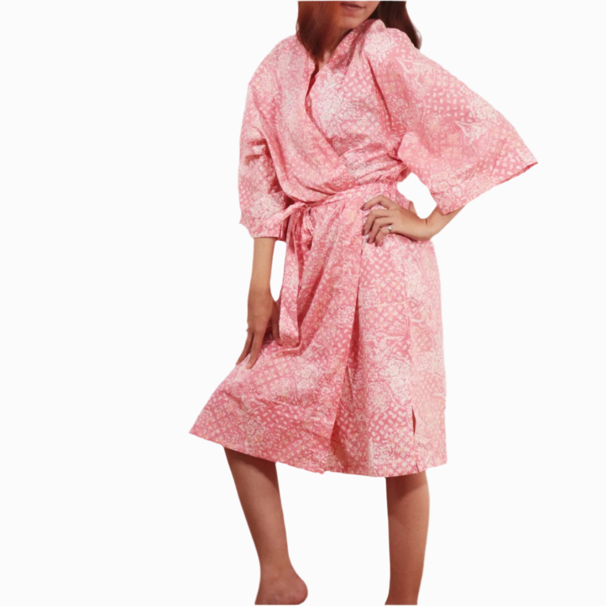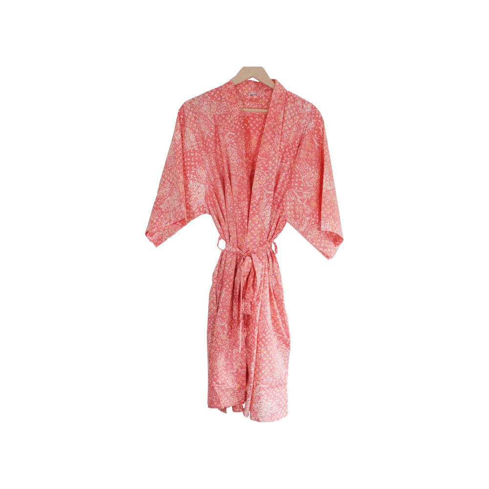 Robe Batik/Kimono faite à la main - Coton - Fleurs sauvages
