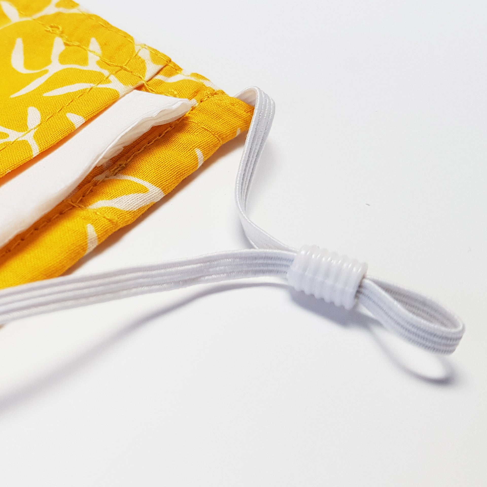 - A un fil de nez et une sangle d’oreille élastique réglable.