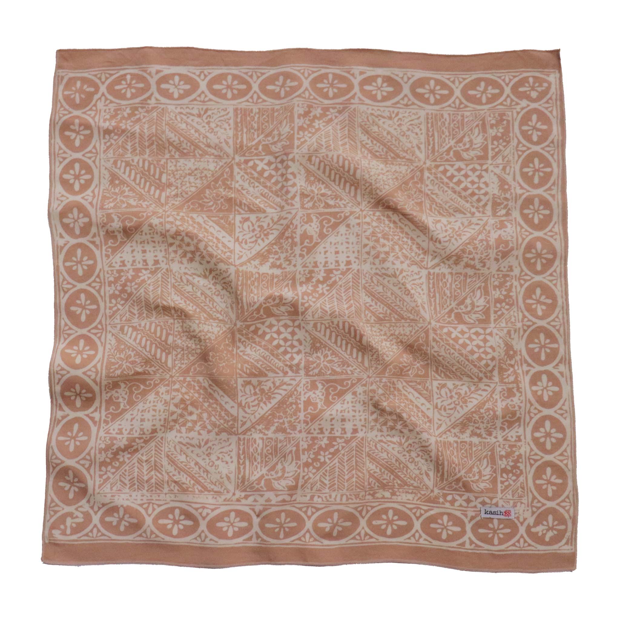 Il s'agit d'un bandana batik teint et estampillé à la main, fabriqué à la main par des artisans. Ce tissu est fabriqué à la main par des artisans de Java en utilisant une technique de batik de cire et de teinture vieille de plusieurs siècles.
