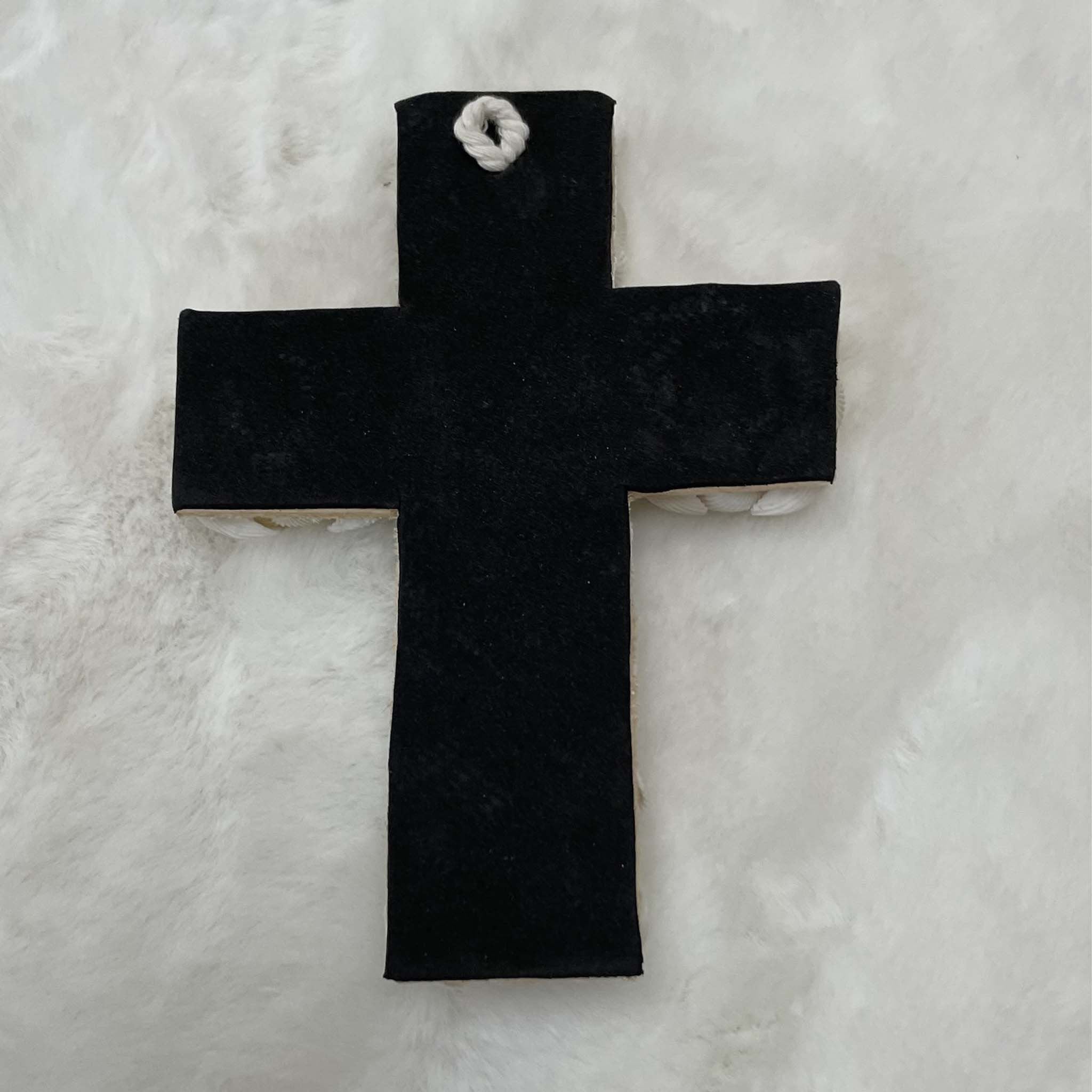 This seashell Wall Decoration features a small cross-shaped design, handcrafted with real seashells. The delicate and intricate details make it a beautiful addition to any wall, adding a touch of elegance and spirituality to any room. Perfect for those seeking a unique and meaningful home decor piece.